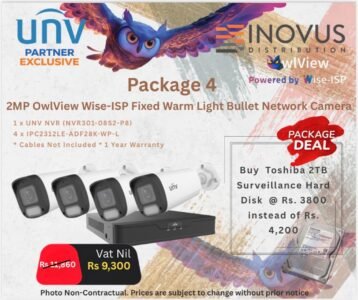 Owlview UNV 4MP ColorHunter Wise-ISP Kit Fixed Bullet Network Camera & 4 Channel NVR + 2TB Harddisk