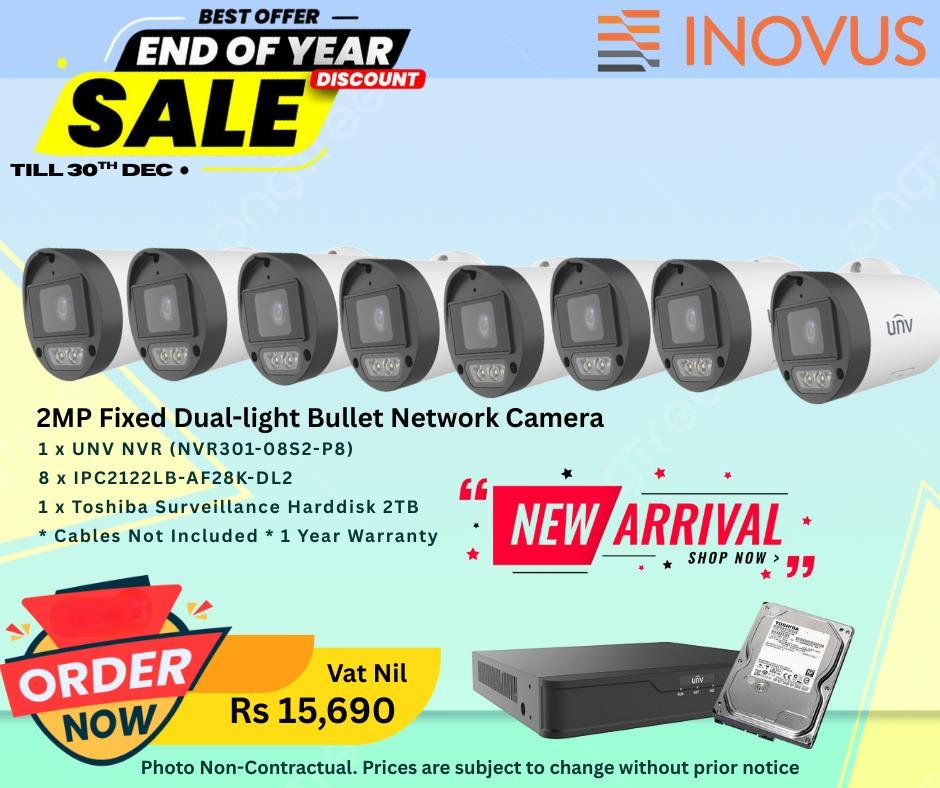2MP FIXED DUAL-LIGHT BULLET NETWORK CAMERA + UNV NVR 1SATA 8 POE Ports+ Toshiba 2TB Hard Disk