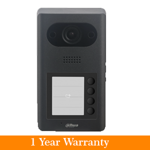 Dahua 2MP IP Villa 4 button Outdoor Station, Viewing Wide Angle 140 degree, ICR Night vision and Voice indication, Mifare Card Reader, Built-in Speaker, Group Call, Video and Audio Messaging, Support Dual-way Bidirectional talk, Built-in Omnidirectional Mic, 10/100Mbps Self-adaptive Ethernet TCP/IP, Aluminum material, DC12V <7W, Push notification, work with DMSS directly with SIP firmware, Excellent Vandal Proof, IP65, IK08, PoE(802.3af), Remote intercom with mobile APP(DMSS), Surface mounted