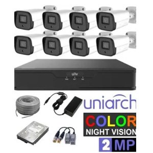 UNIARCH KIT 2MP COLOR NIGHT VISION 8 Bullet/Dome cameras, HDD1 TB, 305M Cables, Baluns and Waterproof power adaptors