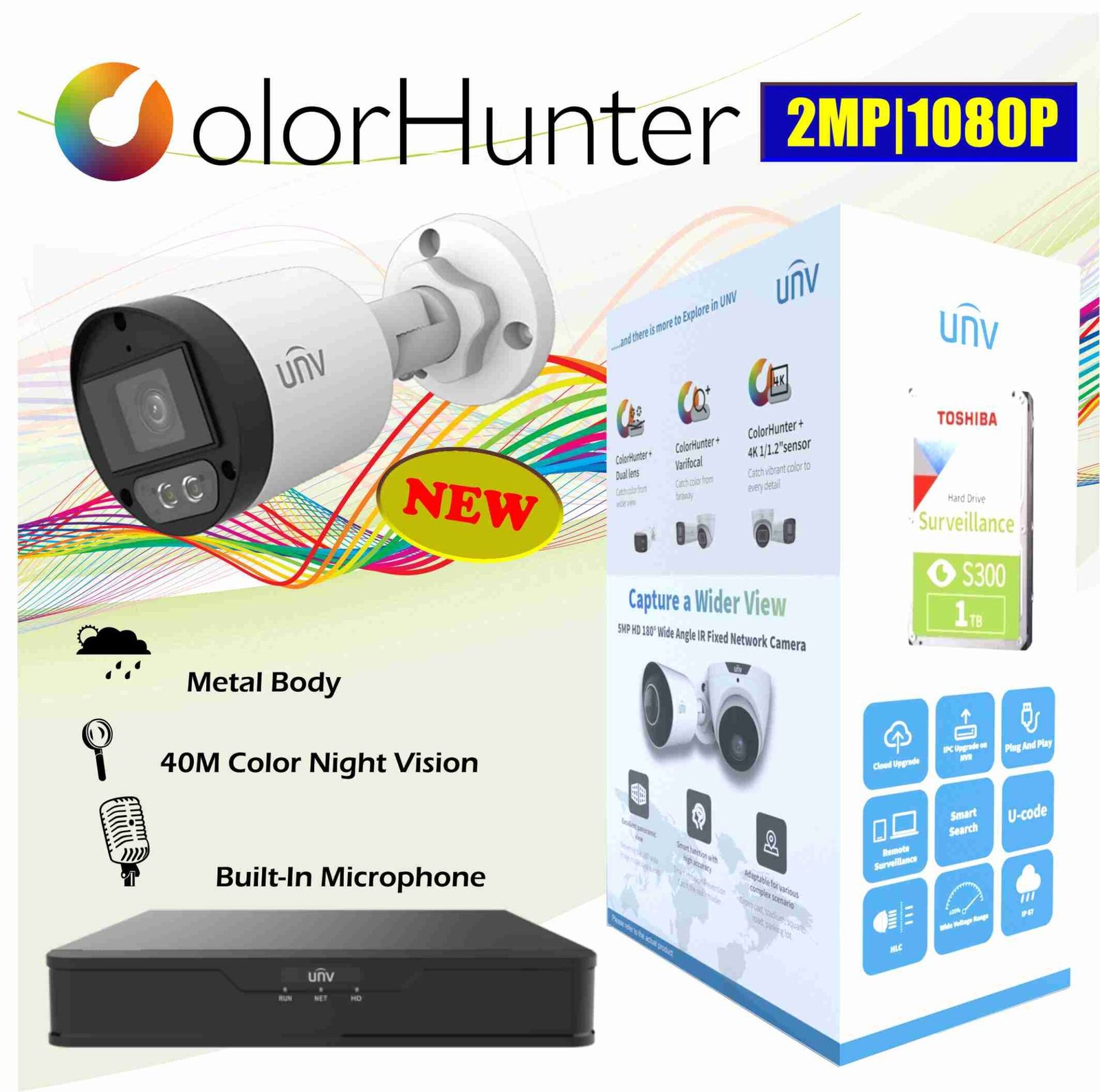 UNV AHD KIT 2MP 40M COLOR NIGHT 8 CAMERAS 12 CHANNEL (With Built In Mic)