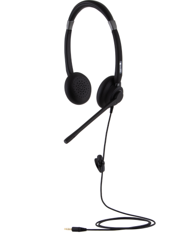 Alcatel AH22 Headset, Corded, for PC or Deskphone with 3.5mm Jack port-With Leather cover